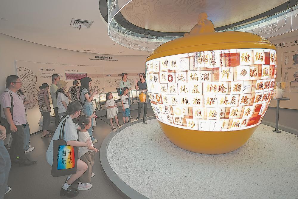 在闽菜博物馆内,榕台职工在了解闽菜文化知识。