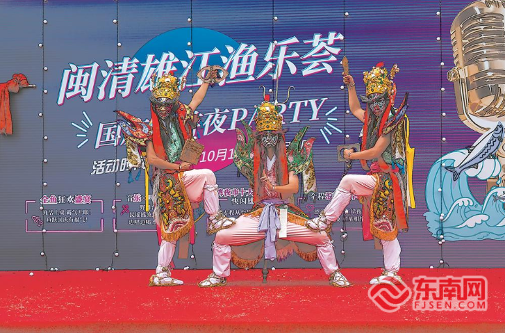 在“闽清雄江渔乐荟·国庆福游夜PARTY”活动上,“官将首”非遗阵头民俗表演登台亮相。