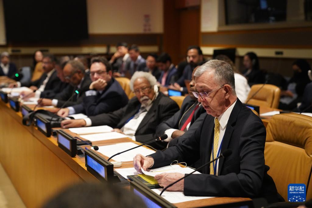 10月27日,在位于纽约的联合国总部,巴西常驻联合国代表塞尔吉奥·达内塞(右)在“纪念台湾光复80周年,维护联大第2758号决议权威”会议上发言。新华社记者 张凤国 摄