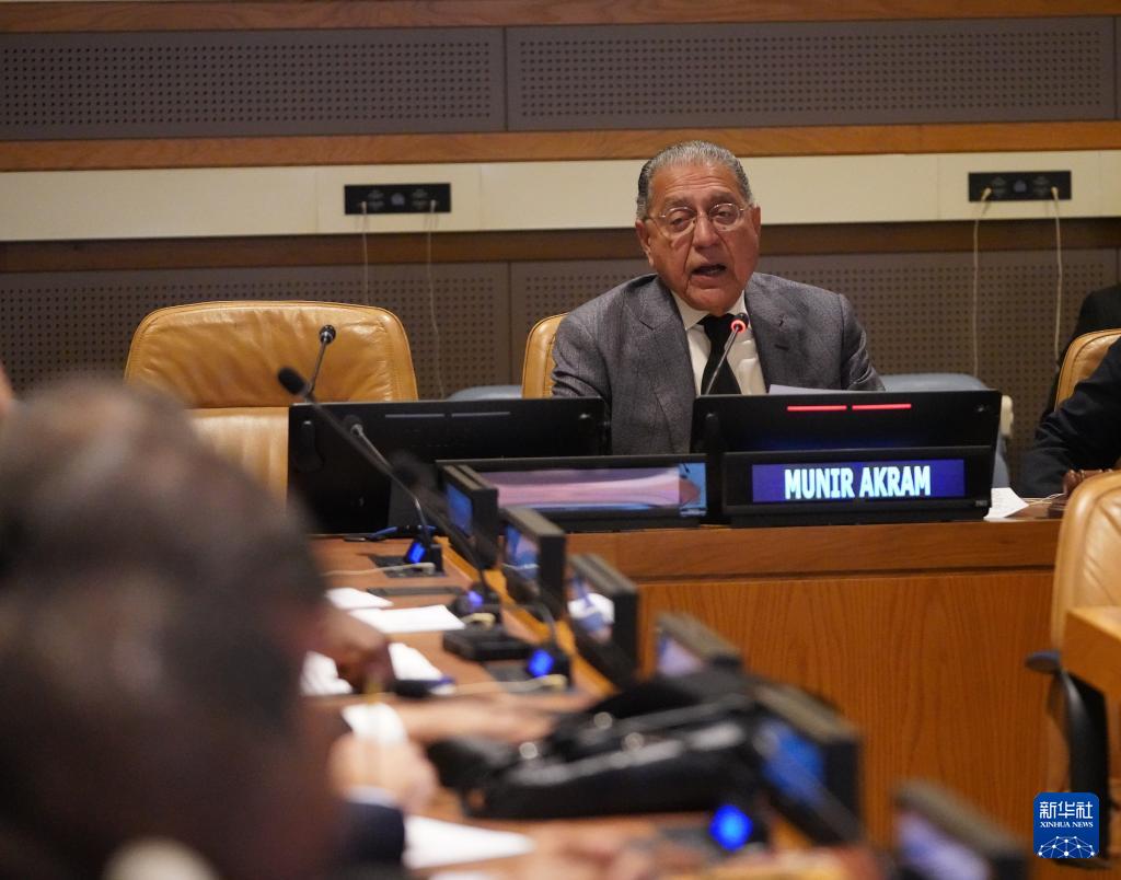 10月27日,在位于纽约的联合国总部,巴基斯坦前常驻联合国代表阿克拉姆在“纪念台湾光复80周年,维护联大第2758号决议权威”会议上发言。新华社记者 张凤国 摄