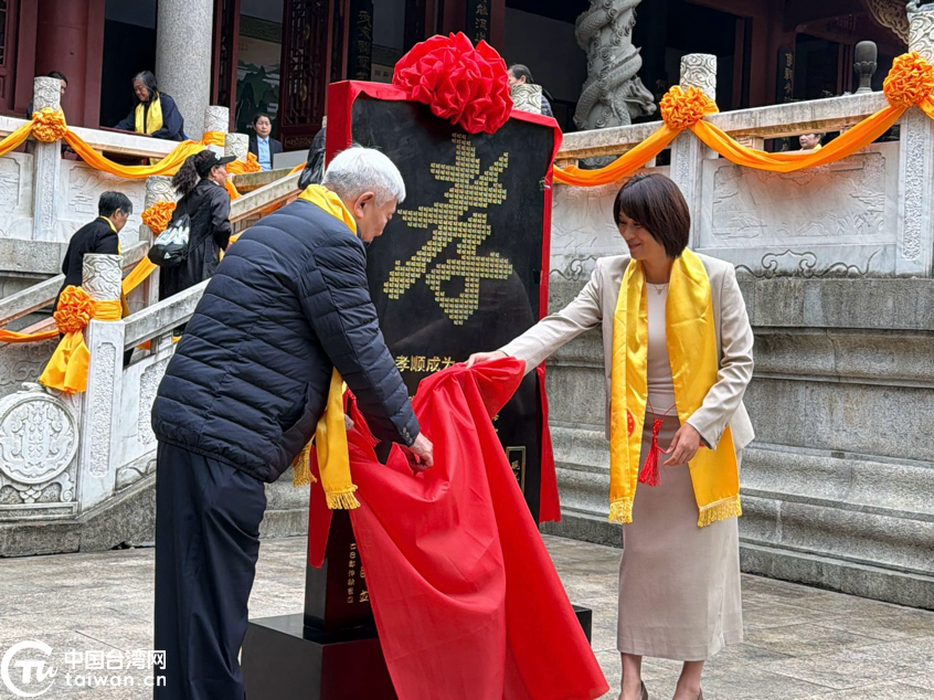 旺旺集团董事长蔡衍明(左)、宁远县副县长曾彩平(右)共同“孝亲碑”揭幕(中国台湾网记者 叶春禄 摄)