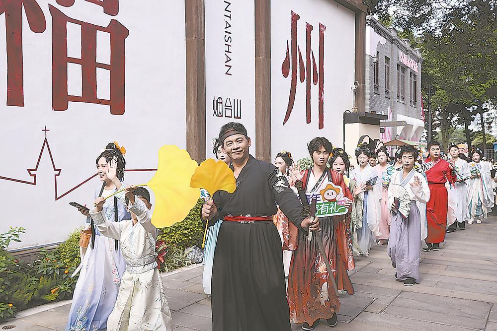 9日,“烟台山NICE人才友好街区”创建活动启动。“烟台山NICE人才友好街区”的创建是福州市仓山区服务人才的具体行动,也是该区助力福州打造榕台青年融合发展的创新实践。图为榕台青年在烟台山街区宣传打卡。福建日报记者 张文奎 通讯员 仓萱 摄