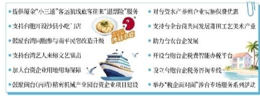 杨希/制图 据东南网 12月2日上午,福建省政府新闻办召开福建省贯彻落实《中共中央 国务院关于支持福建探索海峡两岸融合发展新路 建设两岸融合发展示范区的意见》(以下简称《意见》)系列新闻发布会(第七场)。省台办二级巡视员徐晓菲发布了第五批政策措施,共有三个方面12条。 支持台企台商发展 加大台资企业用地用海保障。单列1200亩用地基础指标用于保障全省6个台商投资区项目建设。对台企备案制用海项目,海域使用论证报告通过专家评审后,无需再出具用海预审意见。 鼓励闽台(南靖)精密机械产业园台资企业项目建设。对机床绿色铸造、控制系统、刀库、主轴、线轨等重点项目,投产后实际固投达到500万元(含)至2000万元,给予单个项目10万元奖励;实际固投达到2000万元以上(含),给予单个项目20万元奖励。对参与国家标准、行业标准、地方标准制(修)订的园区内台企,每个项目分别给予20万元、10万元、5万元一次性奖励。 对台资水产养殖企业实施保费优惠。购买省渔业互保协会水产养殖台风、高温暴雨、大黄鱼价格等类别水产养殖保险的,可享受签单保费5%的优惠。建立陆基循环水养殖、数字化管理系统等节能减污技术体系的,可叠加5%优惠;续保且上一年度未发生理赔的,可叠加5%优惠;连续两年、三年、四年及以上未发生理赔的,分别给予10%、15%、20%优惠。单笔保费优惠上限5万元,全省年总优惠额度为200万元。 支持台企台商共同发展莆田工艺美术产业。对新入驻莆田工艺美术城并租用公营房产的台企,第一年免除100㎡场地租金。为参加海峡艺博会的台商提供免费展位和食宿以及每个展位2000元交通补助。对台企在APEC、G20、金砖会议、博鳌论坛等大型会议中展示宣传莆田工艺美术的,每场次给予最高不超过5万元补助,单家企业每年最高不超过20万元。 助力台农台企发展。由省福农农资集团以直供价格向我省台湾农民创业园台农台企直接配送供应果蔬、茶叶等种植专用肥和高效低毒绿色生物农药。全省供销社系统安排10个农产品展示展销中心或超市,免费设立台农台企销售专区专柜。全省供销社系统的“庄稼医院”、茶叶检测机构免费为台农台企提供土壤养分含量、茶样品质等检测服务。 优化台胞台企办税服务 开设台胞台企税费智能办税平台。平台依托“台胞台企数字第一家园”开通,开展自主切换证件类型、个性化申报提醒、多税种融合申报等188项智能办税服务,全流程线上办理46个税费种缴纳,打造“零接触、一站式”涉台办税新模式。 设立台胞台企税务咨询专线。专线依托12366纳税缴费服务热线开设,提供涉台税费政策咨询、权益保障、意见建议等服务,同步提供闽南语、普通话双语服务。 举办“税企面对面”涉台专场服务系列活动。立足帮助台资企业更大化享受税费优惠和规避税费风险,全省税务系统在2026年底前举办100场面向台资企业的宣税办税系列活动,着力解决台资企业关心反映的问题诉求。 推进对台商贸文旅交流合作 支持台胞开设沙县小吃门店。对在台湾开设沙县小吃门店的台湾同胞,由台湾沙县小吃品牌管理公司统一提供服务,并给予一次性5000元创业补助。同时,三明市每年提供200个名额,免费为台湾青年提供涵盖沙县小吃技艺、中式烹饪师、中式面点师、茶艺师、短视频制作、无人机操作等14类职业技能培训。 鼓励台湾同胞参与南平民宿改造升级。支持台湾旅游业者与南平民宿业者共同打造“武夷茗宿”品牌,对台湾业者参与经营并进行改造升级的民宿,按照装修合同金额的20%给予补贴,单个民宿补贴金额不超过6万元。 提供厦金“小三通”客运航线旅客往来“退票险”服务。旅客可通过“i海台”平台购买退票损失保险,每份保险费5元,发生保险约定原因导致退票后,全额赔付船票退票手续费,减少旅客因退票产生的经济损失。 支持台湾艺人来榕文艺演出。对经审批后在福州市城市商圈、旅游景区、历史文化街区等区域举办的台湾艺人小型营业性演出活动(演艺团队中台湾艺人数达5人以上,且表演曲目时长占演出总时长超70%),按照台湾艺人演出合同金额的40%给予奖励,单次审批演出时间段内奖励合计最高不超过2万元。 |