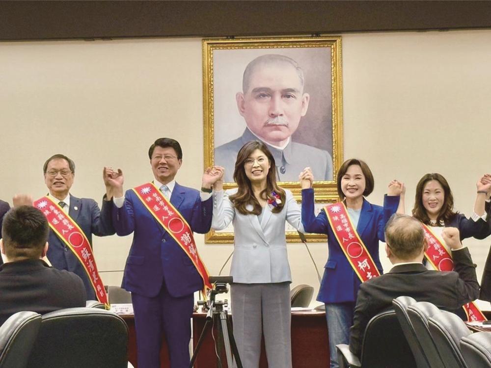 ▲国民党提名苏清泉(左一)参选屏东县长、谢龙介(左二)参选台南市长、柯志恩(右二)参选高雄市长、吴秀华参选台东县长。(台媒图)