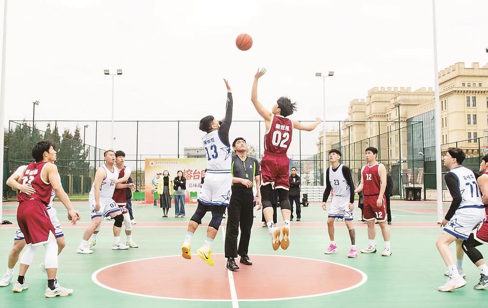 场上比拼,而超越胜负的,是场下的热烈互动。一个漂亮的助攻后,两岸青年击掌叫好;休息间隙,欢声笑语在寒风中回荡,显得格外温暖。“打完球就围在一起聊天,聊战术、聊学校、聊最爱的奶茶店,大家好像老朋友一样。”台湾青年林子元说。