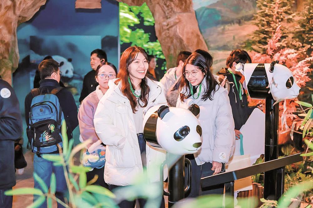 榕台青年在大熊猫科普馆内了解两岸守护熊猫的故事。 (福州团市委供图)