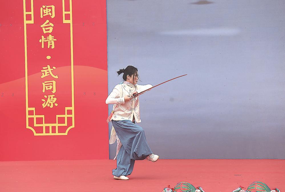 开幕式上,来自两岸的舞狮队联袂献瑞,腾跃翻滚、气势昂扬;机器人展演连城拳精彩亮相,赢得一片喝彩。随后,参加活动的武术爱好者轮番登台展演,拳法刚劲有力、器械演练行云流水、集体表演气势磅礴,充分展现中华武术的深厚底蕴和独特魅力。