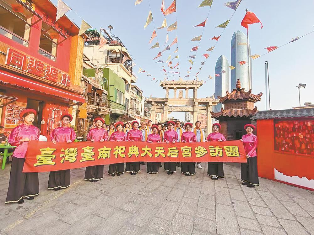 近日,台湾台南大天后宫信众组团到厦门朝宗宫参访交流(如图)。据史料记载,清康熙五十九年(1720年),清政府将台南大天后宫列入官方春秋祭典场所。《厦门志》记载,朝宗宫亦为古代地方官岁时祀典之所。两座宫庙皆享有祀典之荣,体现两岸同根同源、同文同种的历史脉络。