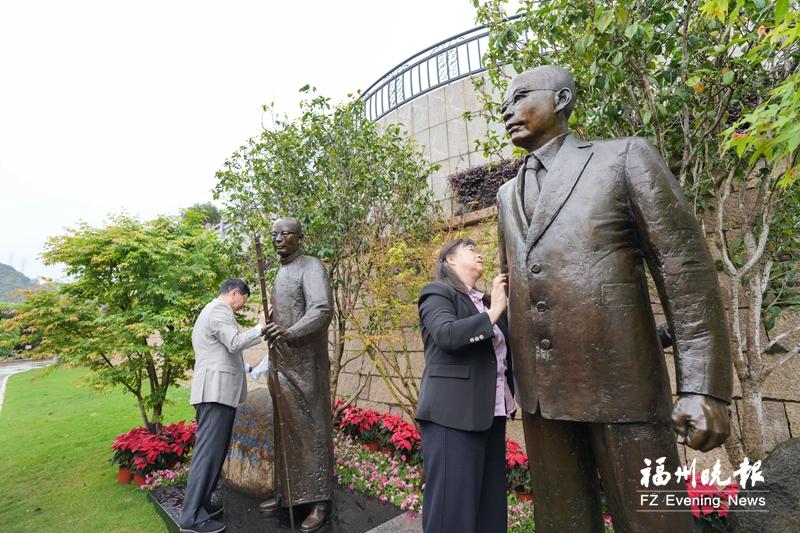 吴石将军孙女吴红、何遂将军长孙何代宁在福州三山人文纪念园祭奠先辈。