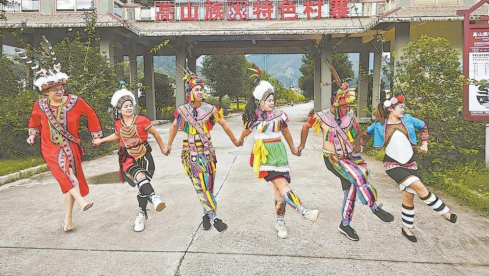 外墙绘有高山族图腾与神话传说的民居 福建日报记者 吴洪 摄 一湾浅浅的海峡,不是阻隔,是归途。 29年前,本报记者走进祖国大陆台湾高山族同胞聚居人数最多的县份——华安,采访了定居于此的台湾高山族老兵。彼时,乡愁是笔下沉甸甸的标题——《一段愁肠两地牵 何日直航了心愿》。那声叹息,道出了无尽的思念。 29年后,本报记者重返华安,探寻当年的足迹。青山依旧,景象却已崭新。昔日老兵们聚居的地方,已建起独具特色的高山族风情村寨。当年老兵们魂牵梦绕的直航心愿早已照进现实,在两岸架起了交流往来的桥梁。 吾心安处是故乡 相隔遥远的山海,华安与台湾因为他们紧紧相连。 20世纪50年代初,林忠富、严谷长、范金华、林富、高文贵、田大作、黄清发7位台湾高山族老兵退伍、转业后定居华安,并在此安家落户、瓜瓞绵延。 随着当年采访时仍健在的高文贵、范金华、林忠富相继离世,他们的后人仍然延续着台湾高山族的民风习俗。 唱山歌、跳拉手舞、抛陀螺、打竿球……记者近日走进华安县仙都镇送坑村,映入眼帘的是高山族特色建筑,昔日的偏乡焕然一新:统一规划的楼房、宽敞平坦的村道、整齐划一的田地、欢声笑语的村民,勾勒出一幅“世外桃源”的美好画卷。 “逢年过节或丰收季,聚在一起喝酒、唱歌、跳舞,是台湾高山族的习俗,如今我们依然坚守着。”古稀之年的高建设是高文贵的长子。他依然记得当年7位高山族老兵时常相聚,他们会穿着传统服饰把酒言欢、载歌载舞。“父亲告诉我,海峡是他们回不去的乡愁,只能以此聊慰思乡之情。” 所幸这份乡愁,在华安得到了慰藉。福建华安,山岭耸峙,河流纵横交错,山地丘陵占全县总面积的95.5%。而台湾的山地面积占全岛总面积三分之二,高山族多分布于台湾高海拔地区。相似的人文、地理、语言,让群山环抱的华安成了最像“家”的地方。 两岸一家,血脉相连。自第一代台胞定居以来,华安县就通过教育、医疗、文化、就业等多方面举措,包括台湾学生就近入学、高山族同胞文化传承发展、医疗补助、筑房安居、促进就业、支持参军等措施,为包括台湾高山族老兵在内的定居台胞撑起了保障“大伞”。 “在华安,我们不仅没有被区别对待,当地政府还非常支持我们读书就业。”高建设告诉记者,1946年,他的父亲被国民党兵抓壮丁,随军来到大陆。1949年中华人民共和国成立,是党和政府将高文贵等台湾高山族老兵妥善安置在华安。正值壮年的高文贵一心希望报效祖国、建设家园,于是给他取名“高建设”,寓意在此建设崭新的家园。 高建设没有辜负父亲的期望。1974年,他赴北京中央民族学院学习,毕业后回到华安工作,后来还担任了华安县台湾同胞联谊会会长,带领定居华安的台湾高山族老兵后代回台湾探亲寻根,促成了两岸高山族同胞的交流往来。 吾心安处是故乡。台湾高山族的后代主要分布在华安县仙都镇送坑村、大地村、市后村、云山村、下林村及华丰镇大燕村、沙建镇沙建村等7个村落。其中,以仙都镇送坑村最为集中。2021年12月,华安县送坑村高山族特色村寨落成,高山族特色民居、民族风情园、高山族演艺舞台,都留下了他们修葺家园、轻歌曼舞、迎接宾客的身影。 如今,这里已成为华安旅游的一大亮点,每年大陆各地的游客纷至沓来,村寨的人气越来越旺,村民们的生活越过越红火。 技传两岸脉相连 “高山长青,涧水长蓝,姑娘和那少年永不分呀……”立冬后进入农闲时节,穿上华丽的民族服饰,欢快地在送坑村高山族特色村寨唱起山歌、跳起拉手舞、玩起抛陀螺,是7位台湾高山族老兵后代联络感情、锤炼技艺的方式。 人群中,高文贵的四儿子高建生与另一位老兵严谷长的孙女严丽贞手拉着手,情意绵绵,他们因高山族舞蹈而相知相爱。 高建生是“高山族拉手舞”省级非遗传承人;他的妻子严丽贞则是“抛陀螺”的高手,与队友们在去年全国少数民族传统体育运动会中夺得该项目一等奖。 “拉手舞少则三五人,多则数十人,盛大节日可达数百人之众,是台湾高山族庆丰收、迎节庆的方式,寓意风调雨顺、团团圆圆;而抛陀螺是高山族的一种传统体育项目,谁打得又准又多,谁就是部落的‘勇士’。”高建生与严丽贞告诉记者,这几年他们携手参与了许多活动,比如全国少数民族运动会、华安丰收季活动、对台交流活动等,这让他们对高山族文化有了更多学习与传承的机会。 自第一代台湾高山族定居华安以来,至今已繁衍至第六代。为了传承高山族文化,范金华、林忠富、高文贵等老兵在世时便将高山族山歌、舞蹈以口耳相传、手把手教的方式传授给子女。20世纪90年代,他们又组团带领孩子们一起前往深圳“锦绣中华民俗村”,开阔视野、提升技艺。 “在那里,我们不仅系统学习了高山族舞蹈,还结识了来自台湾的高山族同胞,学会了抛陀螺等传统技艺。”此行12人在深圳一学就是4年,严丽贞等人回到送坑村后,当地政府又请来专业老师,帮助他们继续提高水平。 华安高山族舞蹈队的编导兼教练张金梅就是其中的一位。自幼喜爱歌舞的张金梅与台湾高山族老兵的后代们时常围着篝火跳舞,她把老兵传授的零星舞蹈动作编成了舞蹈作品。 张金梅还记得,创编的第一支高山族舞蹈《山地情歌》,是1998年与高文贵长孙高荣华共同演绎的,成为当时大陆第一支公开表演的高山族舞