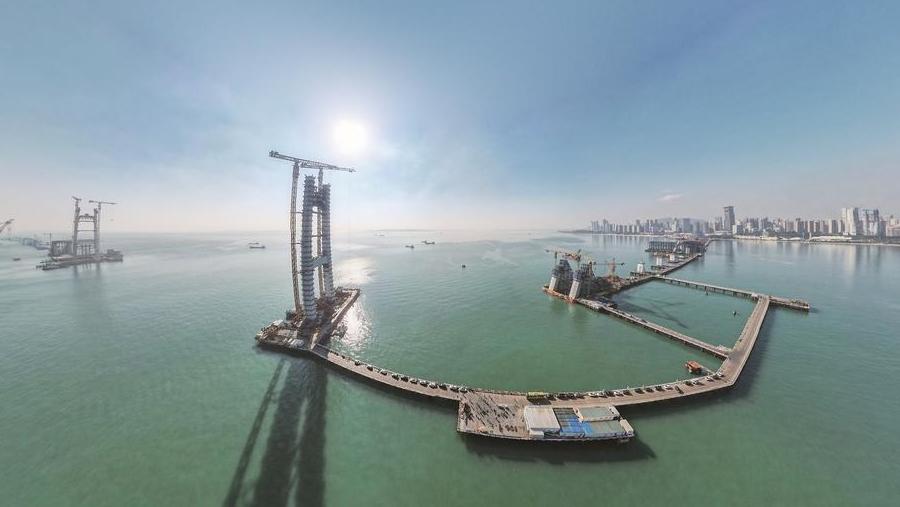 导报记者 沈威/摄 12月1日晚上,厦门外海,刘五店航道之上。最后一节重达数百吨的钢壳,在5500吨级巨轮吊臂的轻缓提放中,严丝合缝地嵌入178.1米高的塔顶。灯火通明的海上,厦金大桥厦门段的东西主塔宣告同步封顶。这座福建省内最大跨径的悬索桥,正式从“立塔”转向“悬索”的关键阶段,距离建成通车又迈出决定性一步。 厦金大桥厦门段起于厦门环岛东路与会展北路交叉口,终点设互通接入厦门翔安国际机场,并预留至金门段接口,路线全长约19.6公里,其中主线长约17.34公里,翔安支线长约2.27公里。该项目是落实“深化两岸融合发展,夯实和平统一基础”的国家重大战略工程,是构建厦金“同城生活圈”的先手棋,由厦门路桥工程投资发展有限公司建设。 海上“搭积木” 单次吊装最大750吨 本次实现主塔封顶的刘五店航道桥,由中国交建、中交二航局、中交一公局集团联合体单位参建。该桥为国内首座五跨连续三跨吊组合桥塔平面缆悬索桥,全长1948米,主跨928米,主塔高178.1米,是福建省内最大跨径桥梁,也是福建省首座全离岸式海中悬索桥。 大桥单个主塔自下而上由60个钢壳节段和2道钢横梁组成,钢结构总重量达8798.2吨,单个钢壳节段最大重量320.4吨,单次吊装最大构件重量750吨(下横梁),单个主塔填充混凝土约14500立方米。 站在施工船上仰望,主塔犹如由数十个巨型银色“积木”垒成。这些“积木”实为预制的钢壳节段,在工厂完成制造后,经海运抵达现场,由“二航卓越”号起重船吊至高空拼接。 无钢筋钢壳 夜间毫米级拼装 该桥与传统桥塔最大的不同,在于它采用了无钢筋钢壳混凝土组合结构。“简单说,就是钢壳内部不铺设普通钢筋。”厦金大桥厦门段A1标段中交二航局项目副总工程师郝聂冰解释道。这省去了最耗时的现场钢筋绑扎与焊接工序,将每个6米高标准节段的施工周期从常规的16天压缩至5.5天,效率提升超66%。 精度是另一大挑战。“气温每升高1度,塔顶就可能偏移1.78毫米。”郝聂冰说。因此,所有关键钢壳的吊装拼接,都必须在温度稳定的夜间进行。团队借助自动化监测系统,对每段拼接进行实时“微调”,最终让这座海上高塔的垂直偏差控制在毫厘之间。 刘五店航道桥主塔封顶,加快了厦金大桥项目建设进程。厦门路桥工程投资发展有限公司项目标段经理陈振福表示,项目建成通车后,将与厦门翔安国际机场、厦金航线共同构建起对台海陆空立体交通新格局,对福建省探索海峡两岸融合发展新路、建设两岸融合发展示范区具有重要意义。 导报记者 余健平/文 沈威/图 |